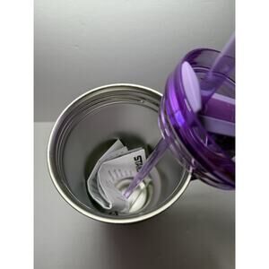 The Stanley X Olivia Rodrigo Exclusive 40oz Flowstate Quencher Tumbler is a stylish and functional beverage tumbler made of stainless steel. This tumbler features a purple color with stars. The drink-through lid allows for easy sipping. Perfect for teens, adults, and girls, this tumbler combines fashion and functionality seamlessly, making it a must-have for anyone on the go.