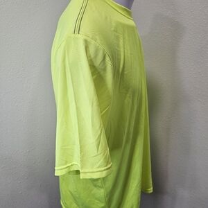 This Stanley hi-vis moisture wick tee is a neon yellow t-shirt designed for men in size large. This shirt features moisture-wicking technology, making it ideal for keeping cool and dry during outdoor activities.**Tag says 2XL but fits like a LARGE**