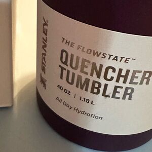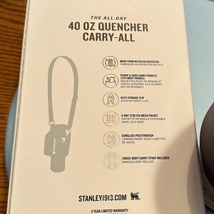 Orange with purple carry-all with a purple tumbler. New inbox Tumblr is 40 ounces plum color with orange carrying case is orange with plum strap matching set. Both are new offers are welcome.