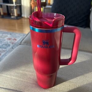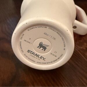 Enjoy your favorite beverages on the go with the Stanley pale pink Travel Mug. Its sleek design and durable construction make it perfect for everyday use. Slight signs of wear on bottom