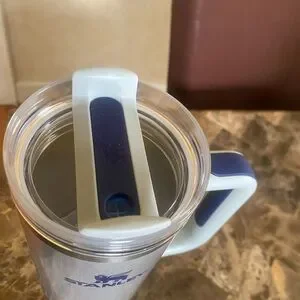 Stanley the FlowState Quencher metallic shimmer Silver Tumbler with navy NWT