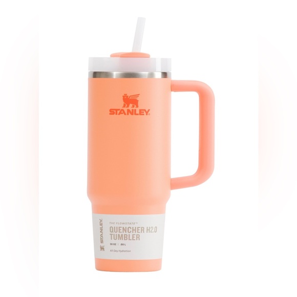 Stanley Quencher H2.0 tumbler, includes matching straw, stainless steel, 30 oz, color: orange or “nectarine”, NWT (new with tags), never used.