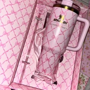 Stanley x Loveshackfancy 40oz quencher tumbler baby bow zip/ pink peppermint cup