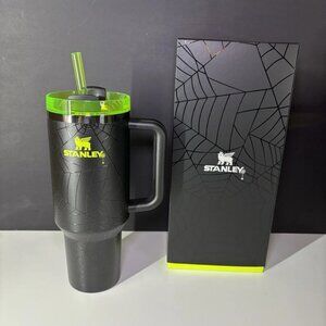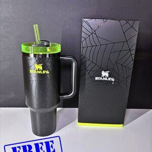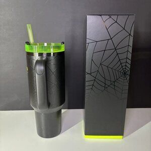 Stanley x Starbucks Halloween Tumbler 40oz – Black Spiderweb Design with Neon