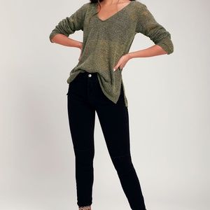 Stansbury Olive Green Loose Sheer Knit Sweater Top