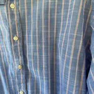 Elevate your casual style with the Stantt blue and white striped button down shirt. Ideal for a laid-back yet polished look.