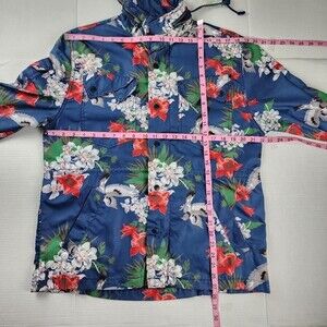 Staple Hooded Rain Jacket Coat Pigeon Brand Blue Floral Birds Print Size M