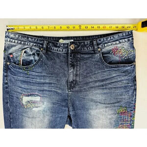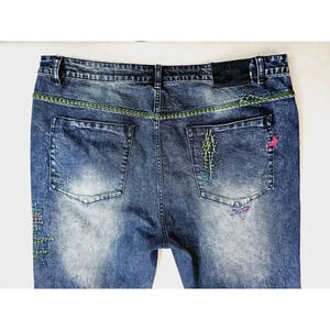Staple Pigeon Size 40X32 Men's Factory Stich Distressed Blue Denim Logo Jeans