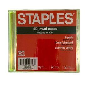 Staples CD Jewel Cases 6 Pack 5 Colored, 1 clear. 10mm standard. New Factory Sealed.