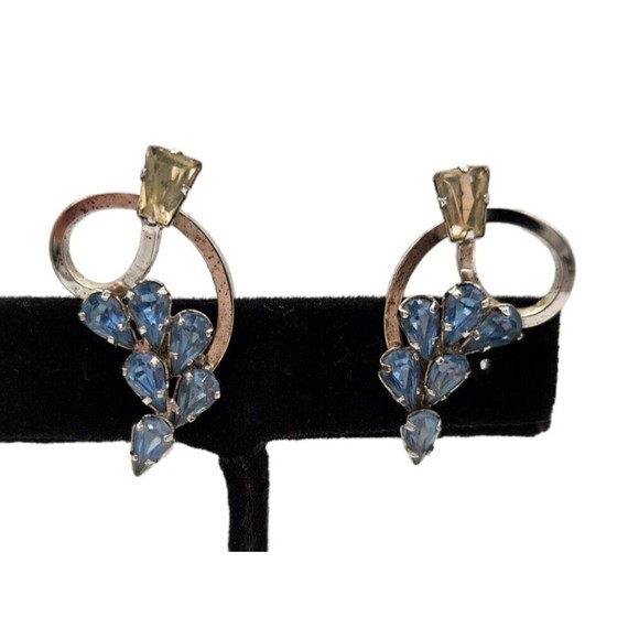 These stunning vintage earrings by Star Art feature flowing design with sparkling blue and white rhinestones. The earrings are signed and made of sterling silver, with a screw back closure for easy wearing. The item length and diameter can be found in the item description. These earrings are the perfect addition to any vintage jewelry collection and will make a great gift for someone special.