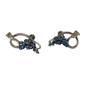 Star Art Sterling Blue White Rhinestone Screwback Earrings Vintage Signed Estate