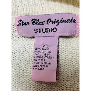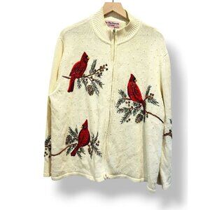 Star Blue Originale Studio Cardinal Sweater XL – Beaded Sequin Pearl Holiday Zip