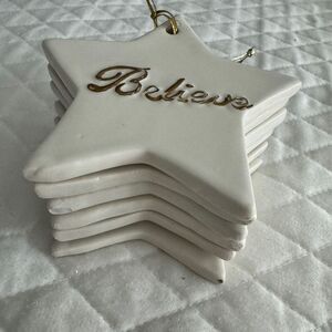 White ceramic Star hanging Ornaments by Lillian Vernon.
