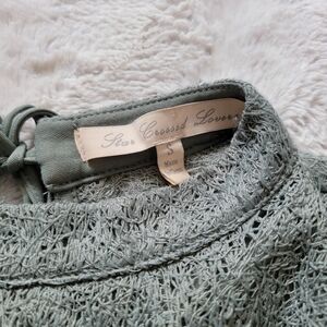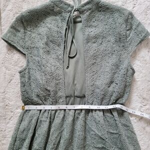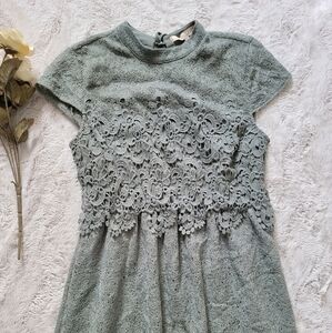 Star Crossed Lovers Seafoam Green High Collar Lace Accent Cap Sleeve Dress Small