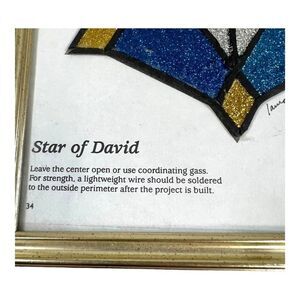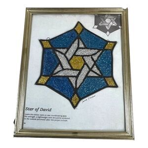 Star David Handmade Stained Glass Sun Catcher Glitter Turquoise Blue Gold Framed