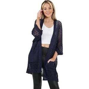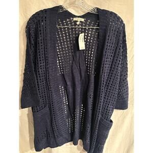 Maurices Navy Star Dolman Cardigan Sweater Women's L/XL Crochet Open Front NWT