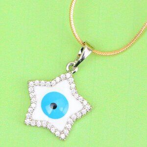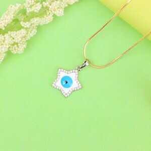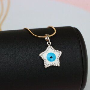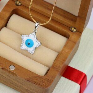 Protective yet stylish, this star-shaped evil eye pendant features a sparkling CZ outline and vibrant center, crafted in gold-plated high-quality brass.