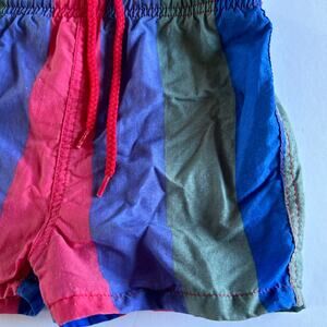 Star Fish Vintage Boys Sz 18 Months Red, Blue & Green Striped Swim Trunks Retro