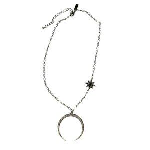 This celestial-themed necklace features a radiant star and crescent moon pendant, adorned with sparkling rhinestones. A gold-toned chain completes the elegant design, making it a captivating accessory that will add a touch of magic to any ensemble. The secure lobster clasp ensures a comfortable fit.