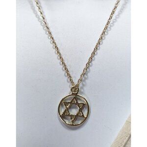 This elegant Star of David pendant features a gold tone finish, perfect for any occasion. A timeless piece that adds a touch of sophistication to any outfit. Ideal for gifting or personal wear.
