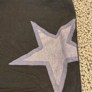 Yes you’re really seeing stars. Great pants. Perfect for walking around or running errands. Elastic waist with drawstring. Racing stripes up the sides of the legs. Pockets on the side and on the back. No size, but best guess a small.