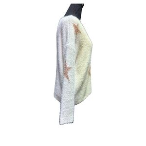 Cozy up in this stylish cream sweater featuring a charming star pattern. Perfect for adding a touch of whimsy to your wardrobe.