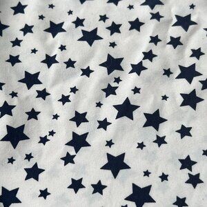 White tank top with navy blue stars. Straps are adjustable. Lightweight fabric.