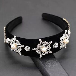 Beautiful pearl and rhinestone headband with decorative stars. Very comfortable.