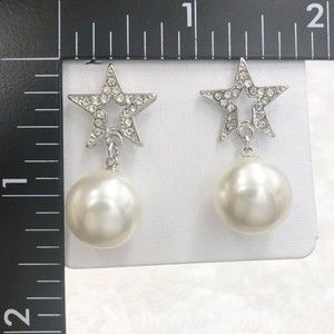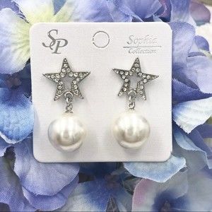 🍀 Star Pearl Rhinestone Silver Post Stud Earrings