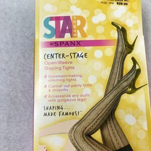 Star Power By Spanx Women Size B Shaping Tights Black Open Weave Diamond Stripe