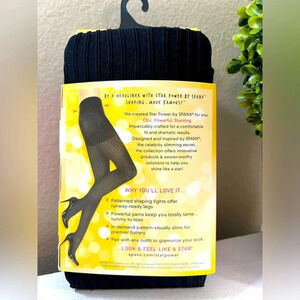 Elevate your style with these Spanx Star Power Patterned Shaping Tights! Designed for women, these tights feature a black ribbed row pattern with a semi-transparent finish and moderate compression level. Made of a nylon blend blended fabric, these tights are perfect for shaping the buttocks, abdomen, and legs.