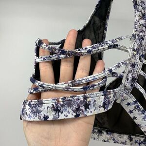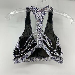 Star Print Sports Bra Racerback Ladder Back Strap Detail Blue Padded With Removable Pads