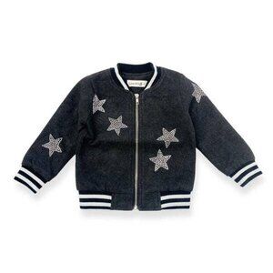 Experience the glamorous style of our Star Rhinestone Kids Bomber Jacket! The shell is made of high-quality materials, including 62% rayon, 33% nylon, and 5% spandex, while the lining is 100% cotton for maximum comfort. Don't miss out on this must-have addition to your child's wardrobe!