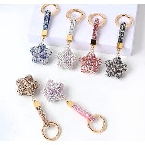 Star Shape Rhinestone keychain/pendant & fur ball (MULTICOLOR)