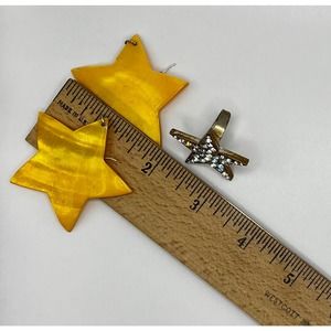 Star Shaped 80s Style Yellow Earrings & Ring Bling Costume Jewelry Lot