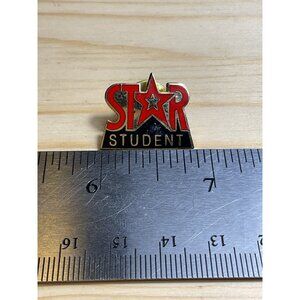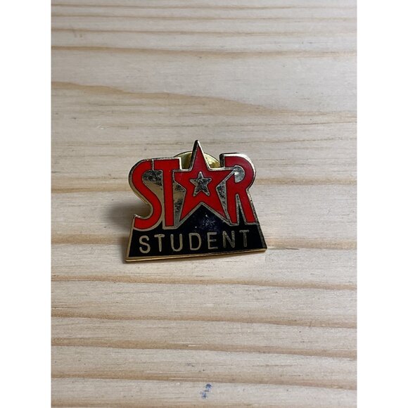 • Pin-back closure with gold-tone metal • Features bold red and black enamel • "Star Student" text design