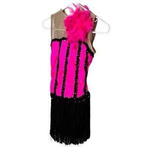 Star Styled Pink dance Costume Dress size Medium fringe flapper