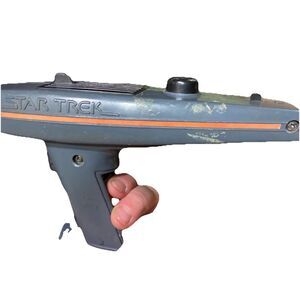 The product is a vintage pair of phasers from Star Trek: The Wrath of Khan, released in 1979. These phasers are part of the collectibles category and are branded by South Bend the electronic toy division of Milton Bradley They are designed in the style of the phasers used in the movie and franchise, making them a sought-after item for fans of science fiction and Star Trek memorabilia. While they do not come in their original box, these vintage phasers still function and are a must-have for any collector of Star Trek memorabilia. Both battery doors missing . 9v batteries NOT included