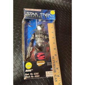 Standing 9 inches tall, this action figure showcases the intricate cybernetic details and menacing appearance that make the Borg so iconic. The high-quality sculpt and paint application bring every wire and metallic surface to life.