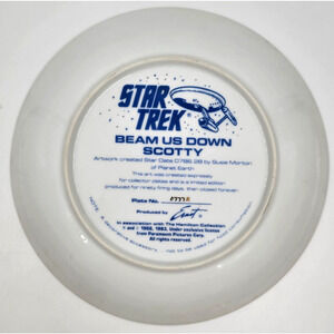 The Star Trek Hamilton Collector 8 1/2"" Plate from 1991 is a vintage collectible featuring the entire crew of The Original Series. Produced by Hamilton Collection and based on the iconic franchise by Paramount Pictures, this plate showcases the beloved characters from the science fiction genre.