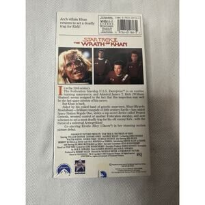 The product is a VHS tape of Star Trek II: The Wrath of Khan, a classic sci-fi and fantasy film directed by Nicholas Meyer. The movie stars renowned actors such as Ricardo Montalban, William Shatner, and Leonard Nimoy. With an NTSC signal standard and a PG rating, this VHS tape allows viewers to enjoy the thrilling and iconic storyline of Star Trek II in the comfort of their own homes.