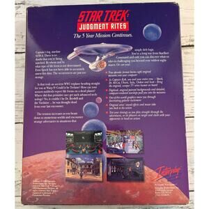 By Interplay ©1993. On 11 3.5” Floppy disks. Sequel to Star Trek: 25th Anniversary, The player controls Captain Kirk of the USS Enterprise, and interacts with Spock, McCoy, and other crewmembers while solving eight "episodes" on and off the ship.
