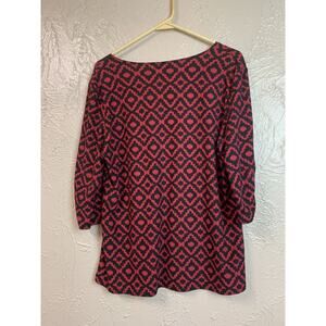 Star Vixen Red Black Geometric Print 3/4 Sleeve Round Neck Top Size Medium