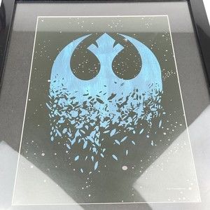 Star Wars 11x14 Framed Matted Fractured Blue Rebellion Symbol On Black Starfield