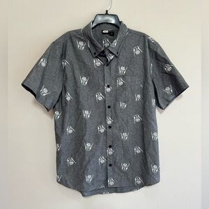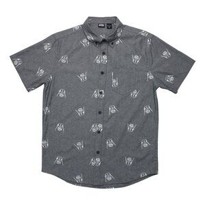 Star Wars Allover Darth Vader Print Cotton Short Sleeve Button Down, Grey, L