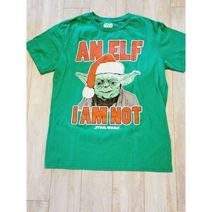 Star Wars "An Elf I Am Not" L Men's T-Shirt Yoda Ugly Christmas Green Red Lg