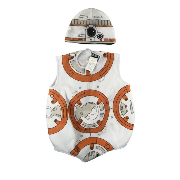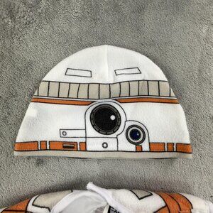 Star Wars BB-8 Costume Toddler 3T-4T White Orange Fleece Hat Set Disney Suit