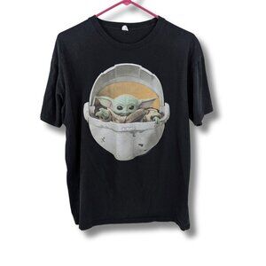 Star Wars Baby Yoda Grogu Hover Pod Tee Black The Mandalorian Size L