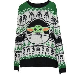 Star Wars Baby Yoda Unisex Crewneck Argyle Knit Ugly Christmas Sweater Small