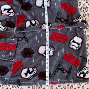 Fits more like a 4T-5T. Gently used very comfy and Star Wars cool. Belt is sewn on. From pet and smoke free home. Questions and or Offers welcome.